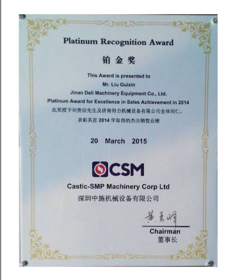 Congratulations to our company Jinan Deli Machinery Equipment Co., Ltd. for winning the gold medal in the 2014 sales of the company's commercial washing equipment.